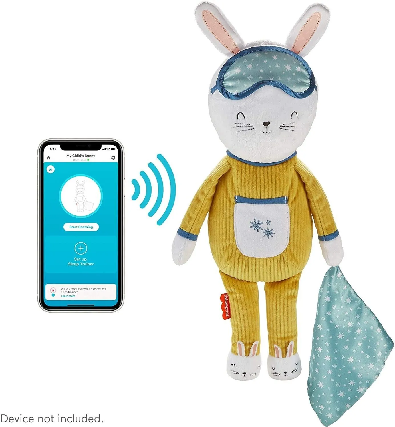 Króliczek Usypianka “Zaśnij ze mną” Fisher-Price to mięciutka zabawka, która pomaga maluchom nauczyć się samodzielnie zasypiać dzięki playliście z uspokajającą muzyką i dźwiękami (opracowanej przy współpracy ekspertów w dziedzinie snu). Aby pomóc dzieciom w wyrabianiu odpowiednich nawyków związanych ze snem, brzuszek króliczka podświetla się różnymi kolorami, dzięki którym maluchy wiedzą, kiedy pora zasypiać, a kiedy można wstać i zacząć nowy dzień pełen przygód. Wygodna aplikacja Smart Connect umożliwia dostosowanie wszystkich ustawień i sterowanie nimi bez zakłócania snu dziecka.