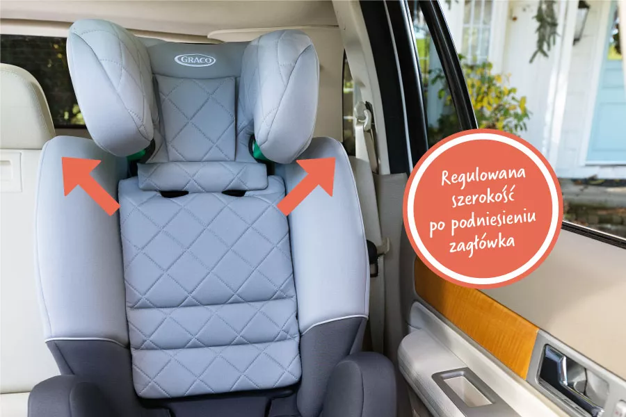 Fotelik SlimFit R129 dostosowuje się do wzrostu i sylwetki dziecka. Gdy zagłówek jest podniesiony, boczne skrzydła fotelika samochodowego jednocześnie się rozszerzają, zapewniając maluchowi wygodę i bezpieczeństwo.