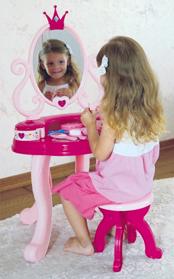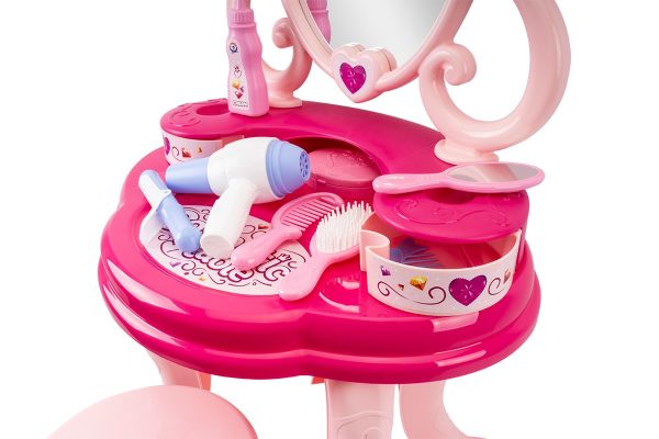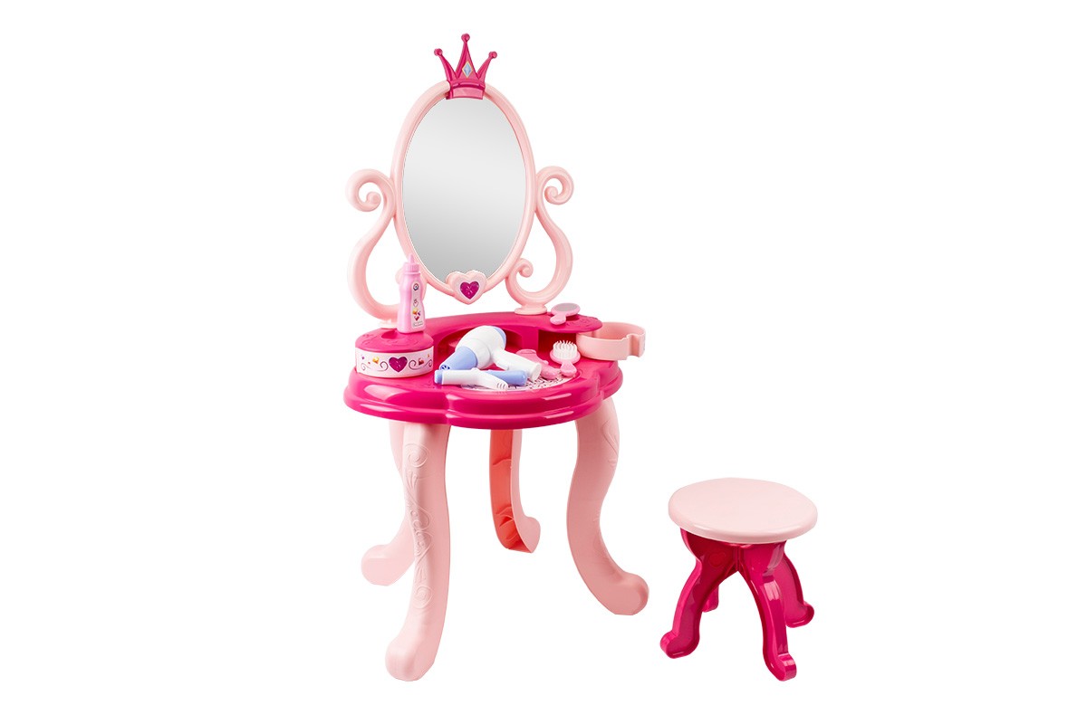 Toaletka TechnoK z krzesełkiem to idealna zabawka dla małych księżniczek, które marzą o własnym kąciku piękności. Zestaw pozwala wcielić się w rolę stylistki, makijażystki i fryzjerki.