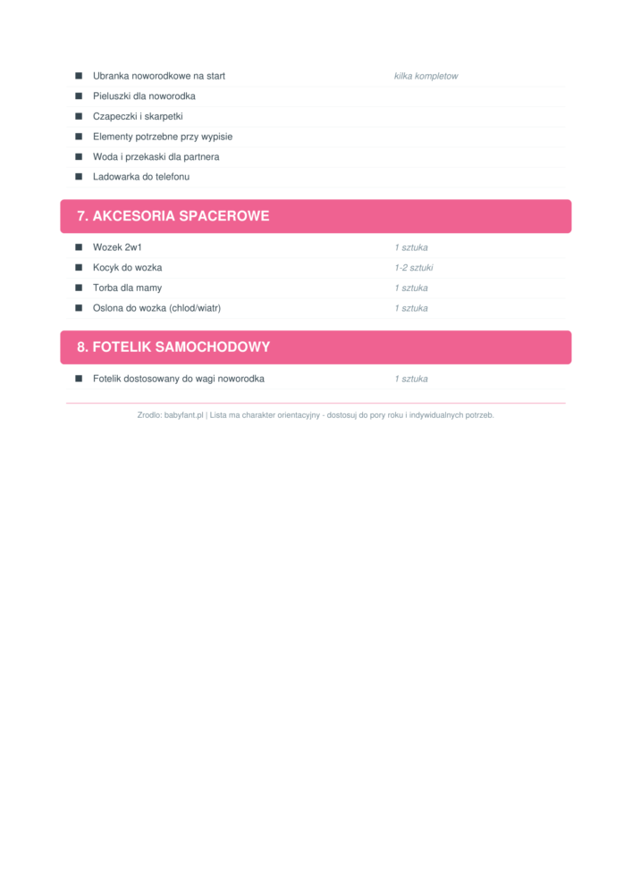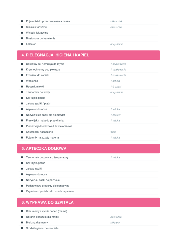 - 2 tygodnie przed porodem końcowa weryfikacja listy i uporządkowanie wszystkiego w domu